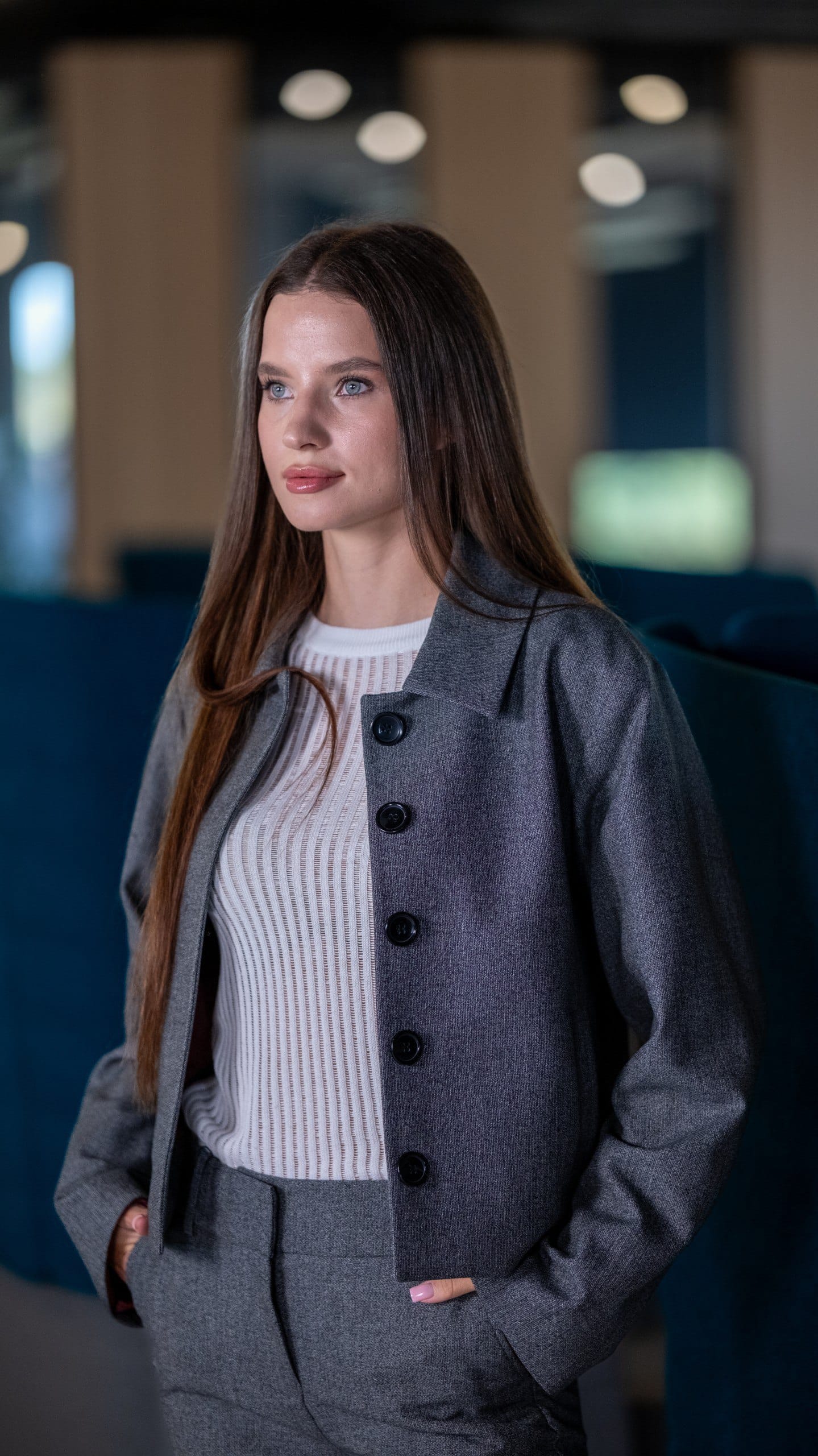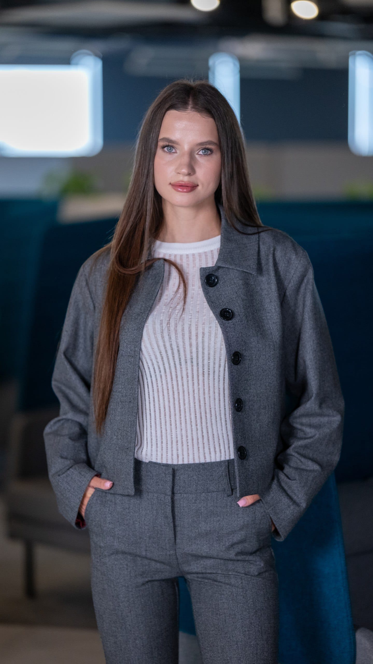 Куртка жіноча сіра однотонна у сірому кольорі. Однотонний дизайн. Склад: 90% вовна, 5% поліестер, 5% віскоза. Підходить для всіх сезонів. Для прохолодної погоди та щоденного носіння. Поєднується зі штанами, піджаком і светром.