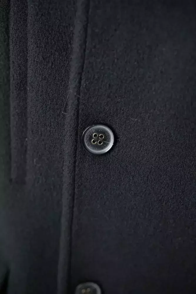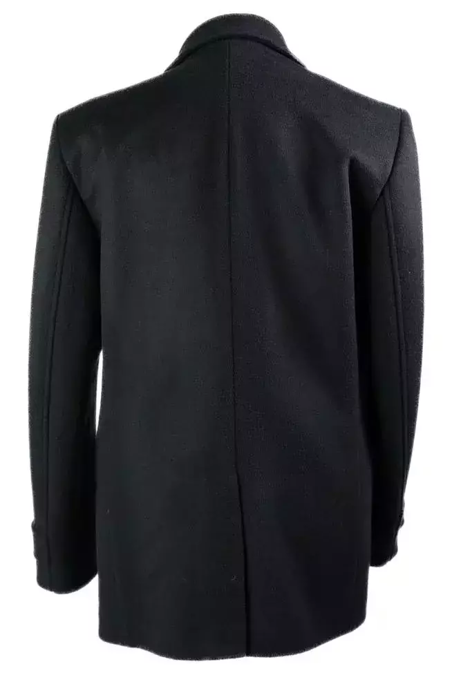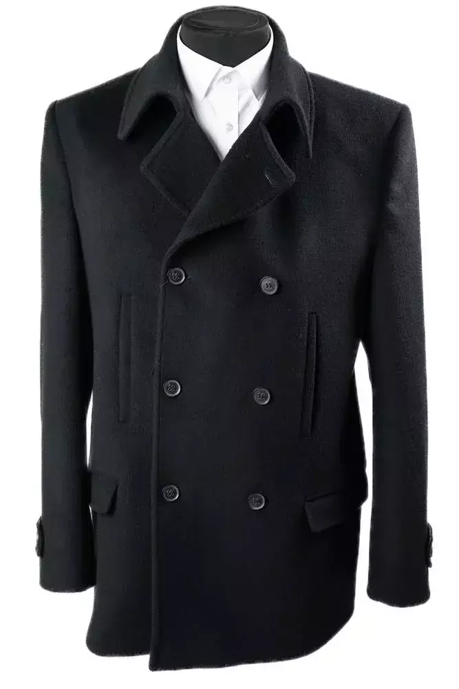 Пальто чоловіче чорне однотонне з вовни осінь-зима у чорному кольорі. Однотонний дизайн. Прямий напівприталений силует. Без лацкану. Склад: 90% вовна, 5% поліестер, 5% віскоза. Підходить для сезону осінь-зима. Для прохолодної погоди та щоденного носіння. Поєднується зі штанами, піджаком і светром.