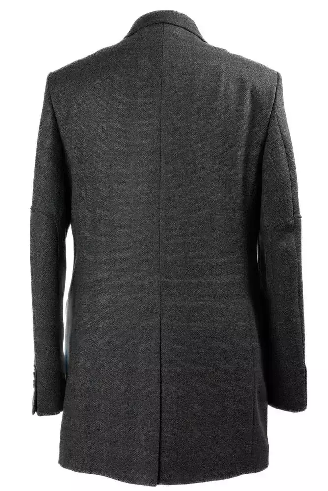 Пальто чоловіче чорне в клітинку у чорному кольорі. Дизайн у клітинку. Прямий напівприталений силует. Прямокутний лацкан. Склад: 90% вовна, 5% поліестер, 5% віскоза. Підходить для сезону осінь-зима. Для прохолодної погоди та щоденного носіння. Поєднується зі штанами, піджаком і светром.