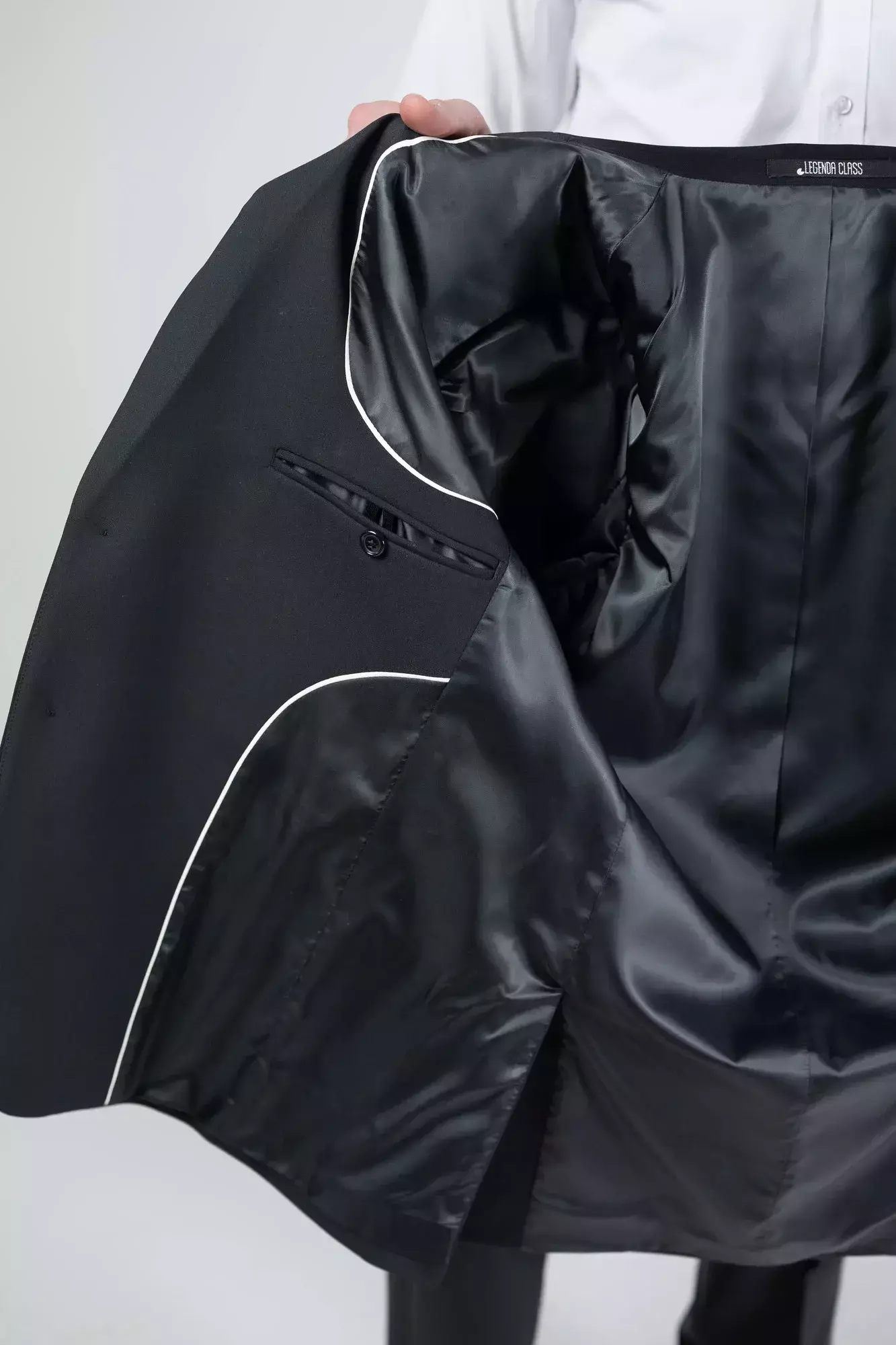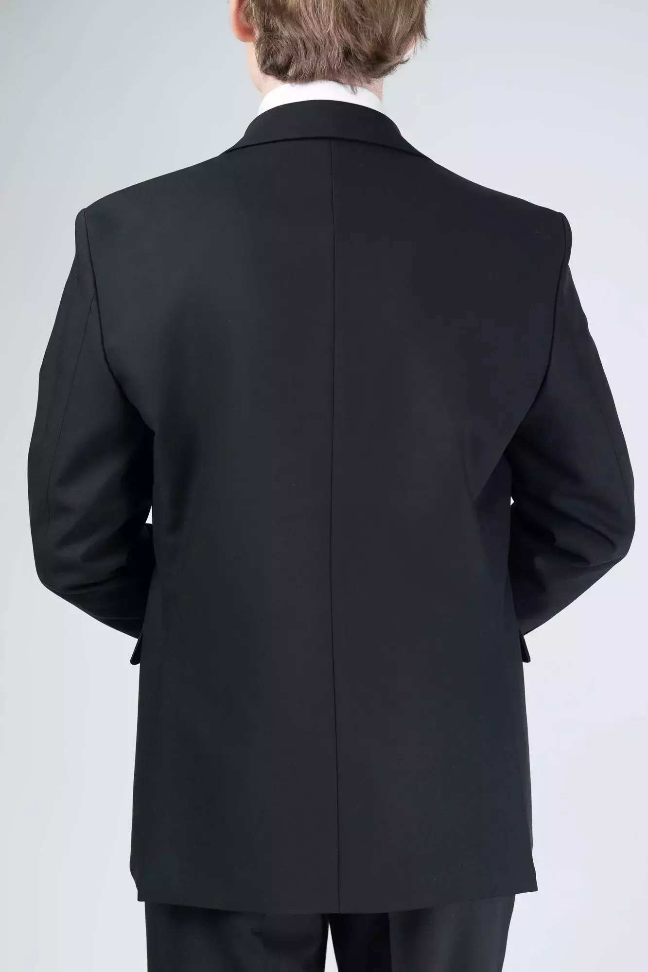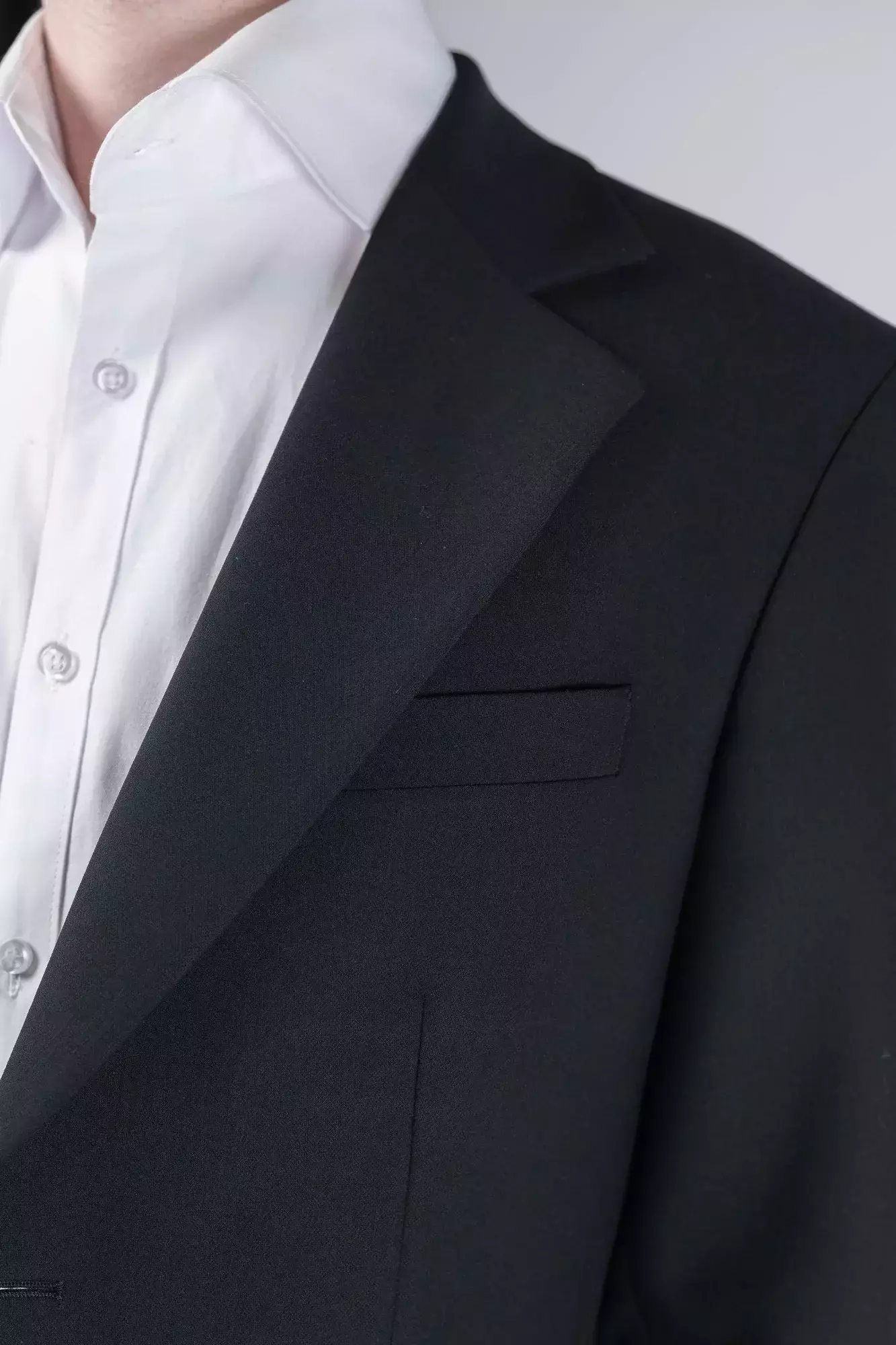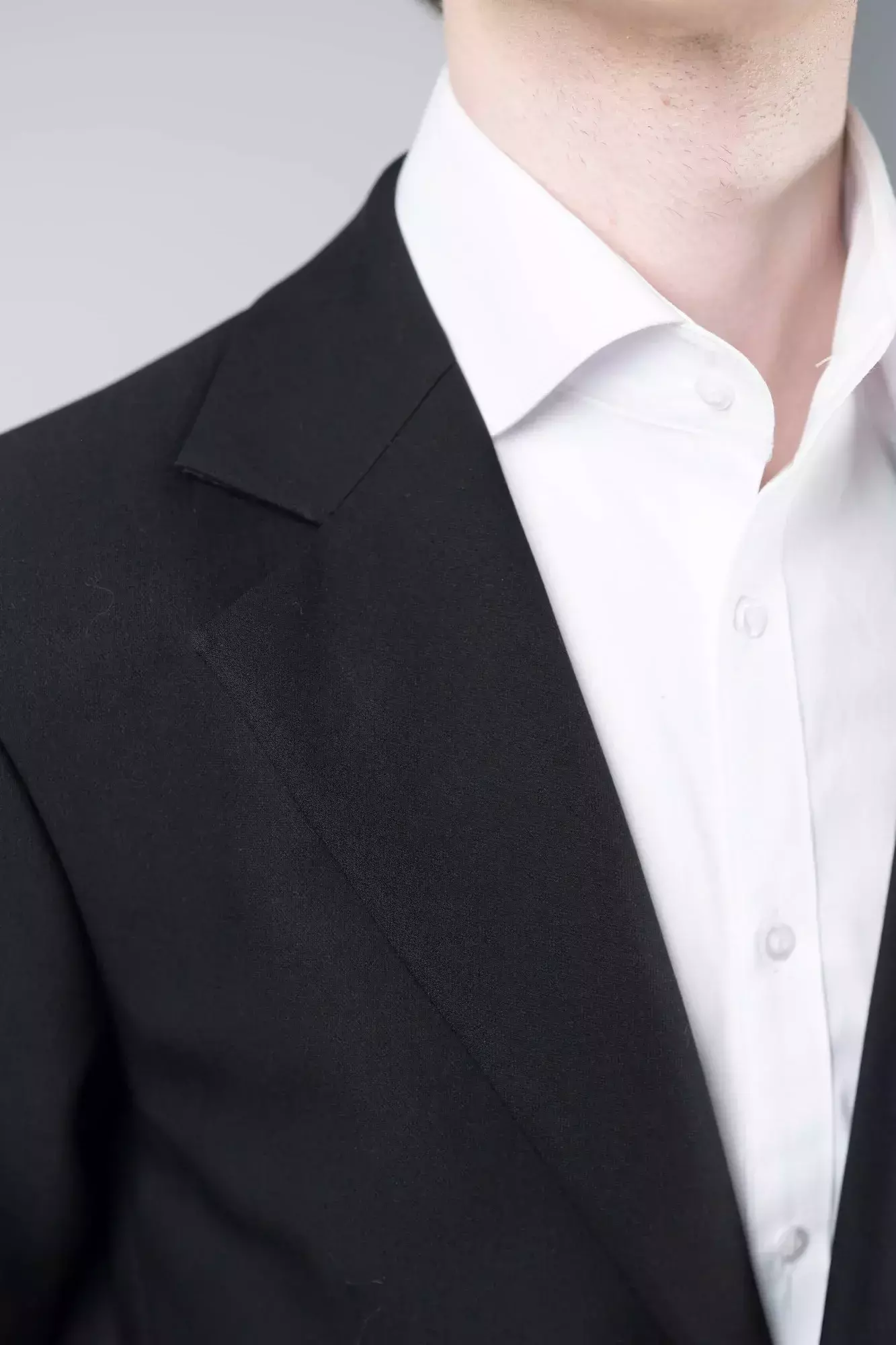 Чорний однобортний піджак Tenebris LR 1 у крої regular fit — вільніший і комфортніший у повсякденній носці, ніж модель 1028. Модель отримала значно ширший лацкан, лаконічний однотонний дизайн і класичні деталі, що роблять її універсальною для роботи, подій та щоденного носіння.