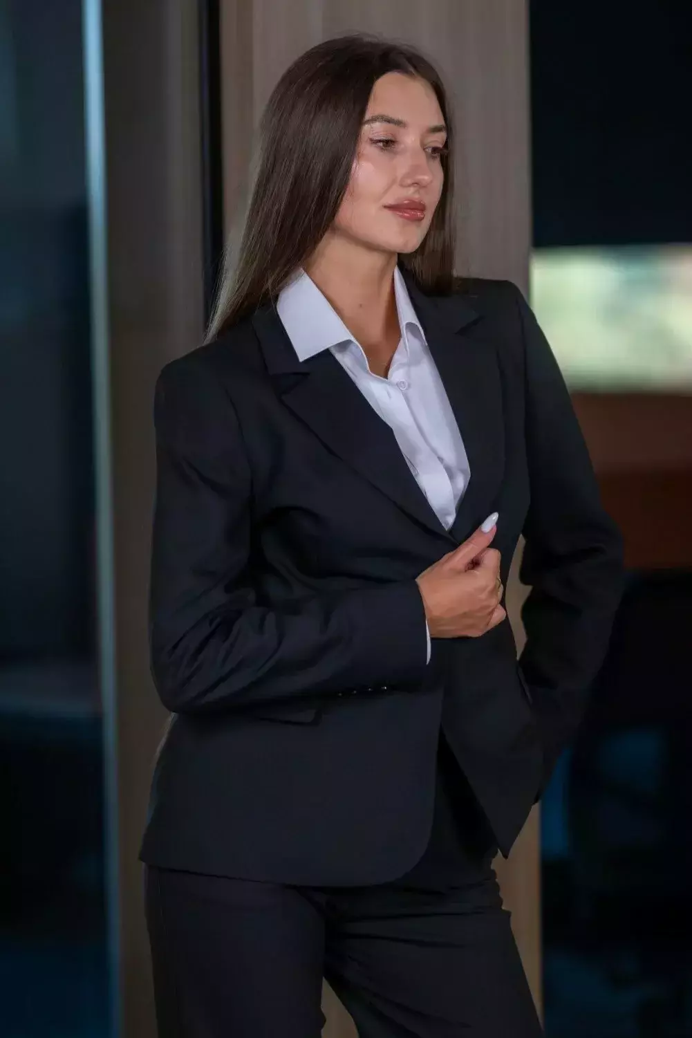 Піджак iSA 26 — завужена модель середньої довжини на один ґудзик, яка м’яко підкреслює силует і формує виразну талію. У порівнянні з подовженими прямими моделями (iJA 21, iTSSV1, iJA 6) виглядає більш компактно й зібрано, але має менше свободи по об’єму та довжині.