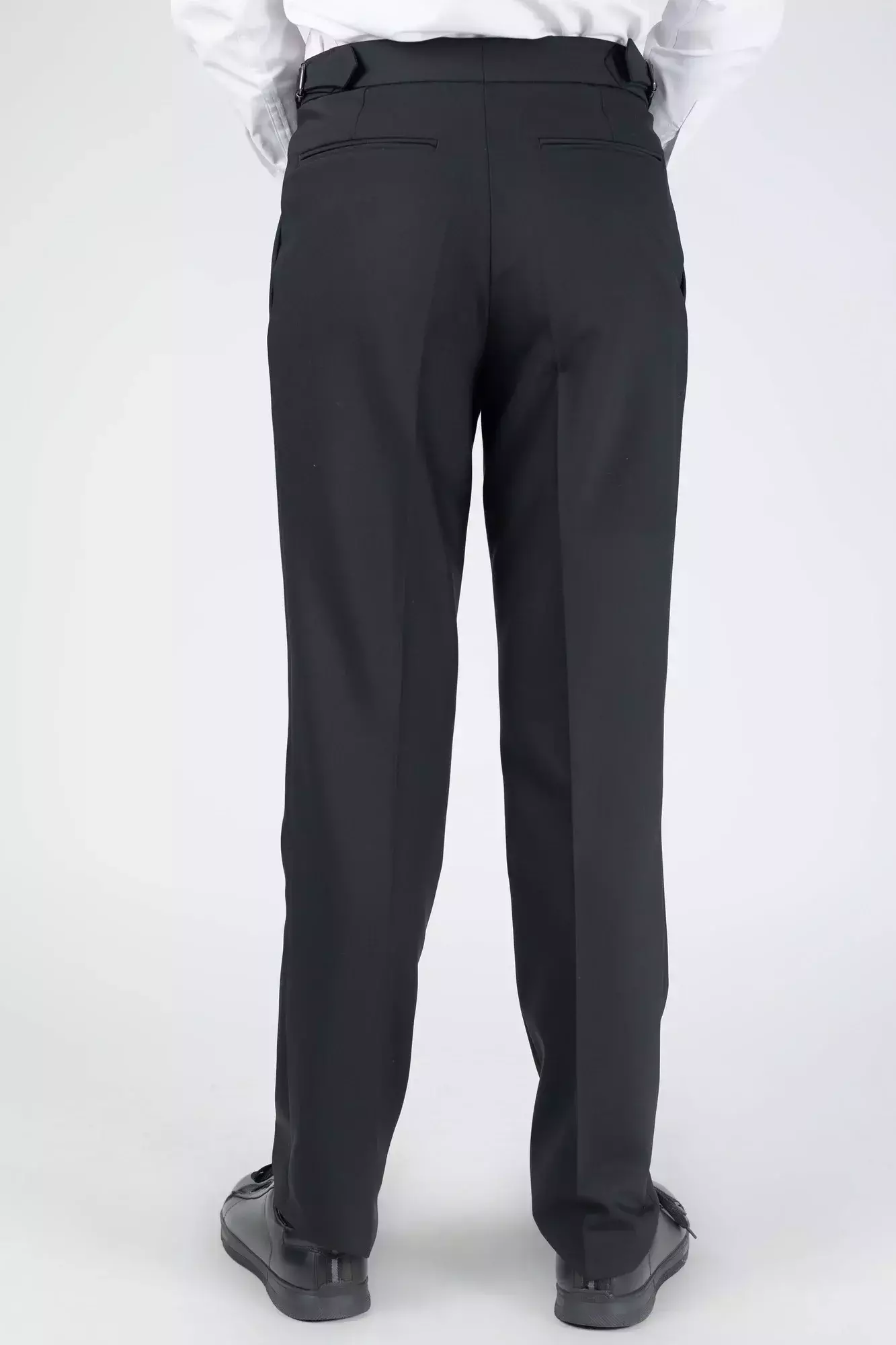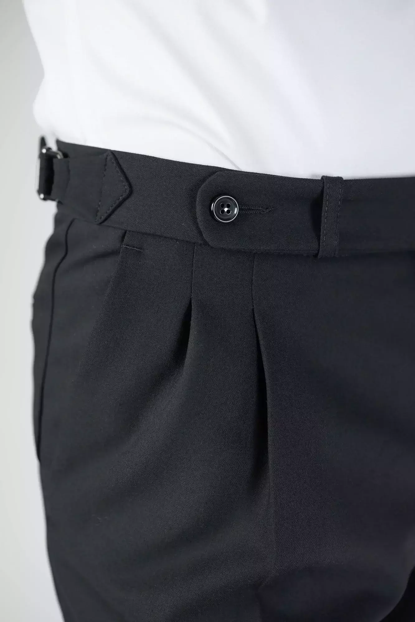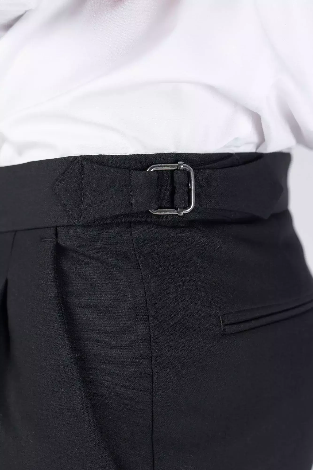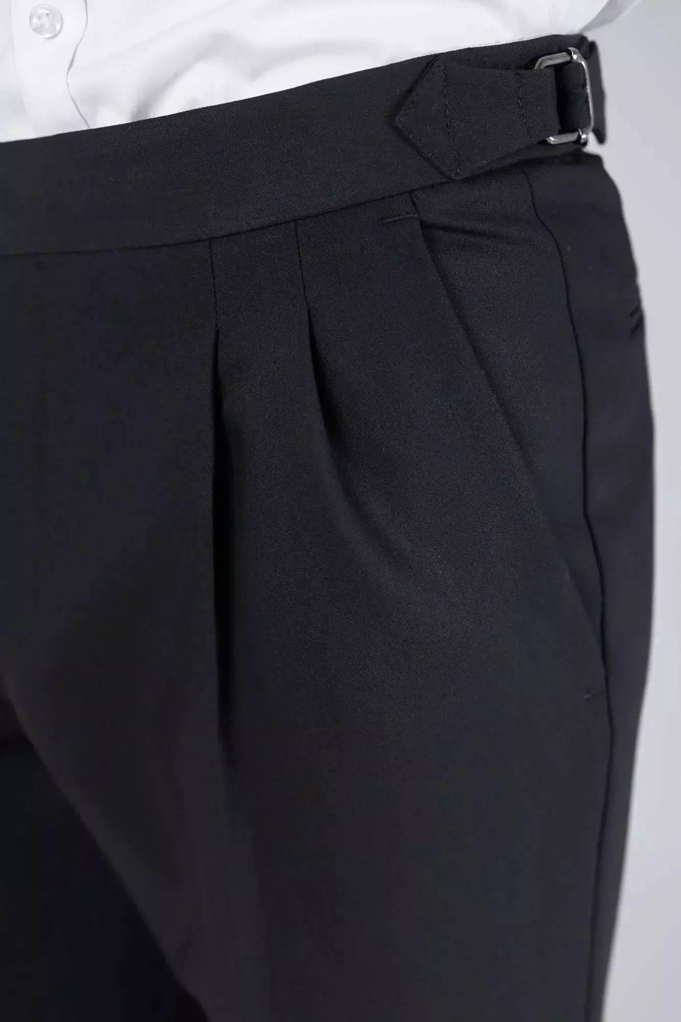 Чорні штани Tenebris LR 2 — значно вільніші за модель 43021 та мають високу посадку, що дозволяє носити їх без ременя. Модель поєднує комфортнішу посадку, лаконічний однотонний дизайн і класичний характер, тому добре підходить як для костюмного комплекту, так і для щоденного носіння.