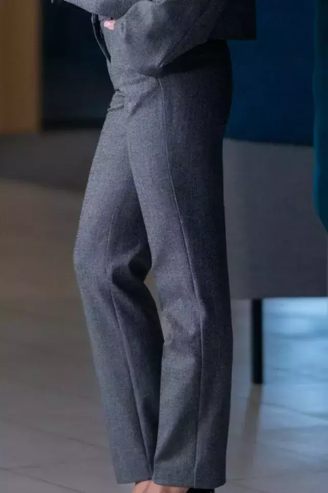Штани жіночі сірі однотонні у сірому кольорі. Однотонний дизайн. Крій slim fit. Склад: 71% вовна, 24% віскоза, 5% еластан. Підходить для всіх сезонів. Для офісу, подій і щоденного носіння. Поєднуються з піджаком, сорочкою та жилеткою.