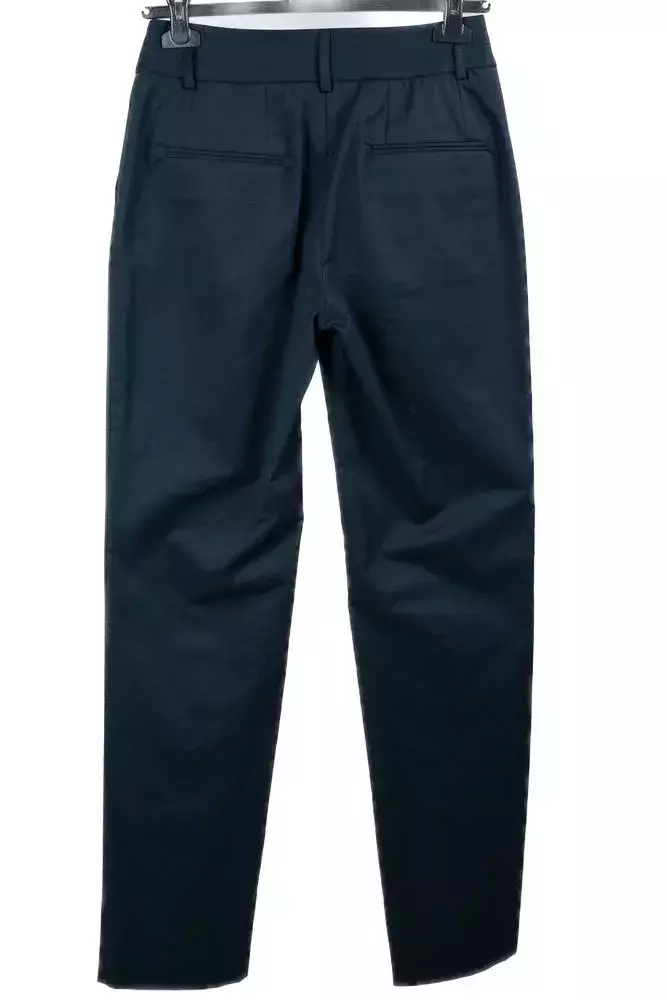 Штани жіночі сині однотонні у синьому кольорі. Однотонний дизайн. Крій slim fit. Склад: 97% котон, 3% еластан. Підходить для всіх сезонів. Для офісу, подій і щоденного носіння. Поєднуються з піджаком, сорочкою та жилеткою.