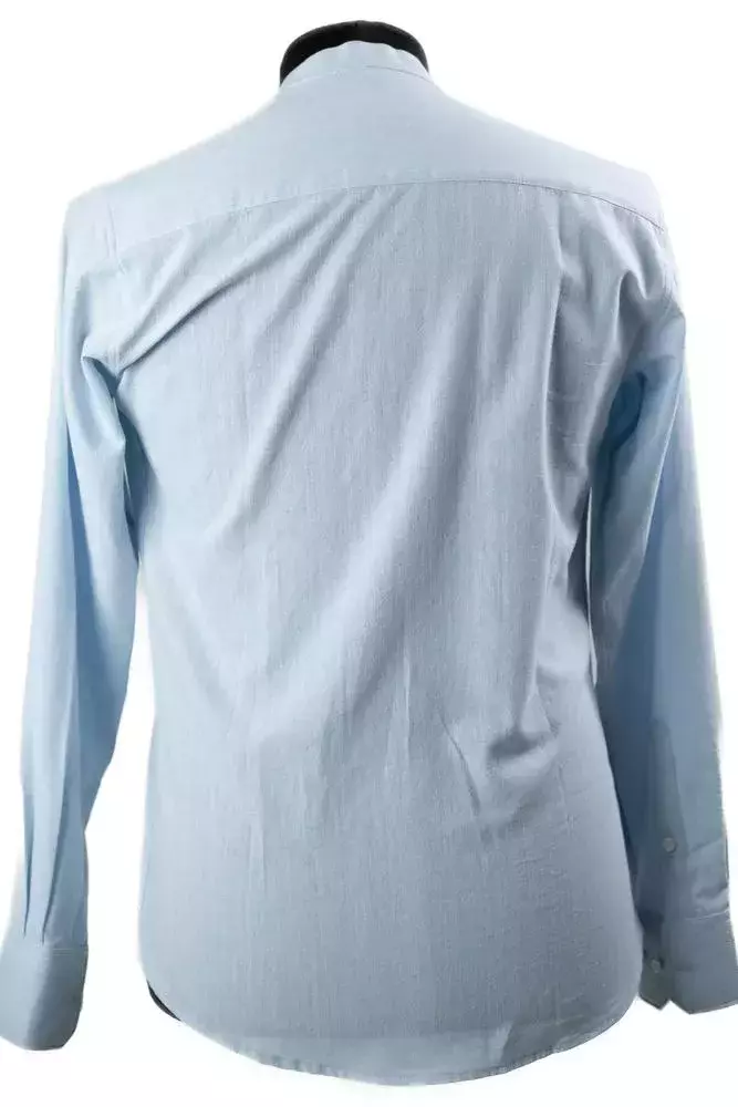 Сорочка чоловіча сіро-голубий однотонна з котону у синьому кольорі. Однотонний дизайн. Крій slim fit. Комір на стійку. Склад: 100% котон. Підходить для всіх сезонів. Для офісу, подій і щоденного носіння. Поєднується зі штанами, піджаком і жилеткою.