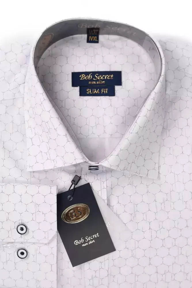 Сорочка чоловіча біла бджолині соти у білому кольорі. Дизайн бджолині соти. Крій slim fit. Класичний комір. Склад: котон 80%, поліестер 20%. Підходить для всіх сезонів. Для офісу, подій і щоденного носіння. Поєднується зі штанами, піджаком і жилеткою.
