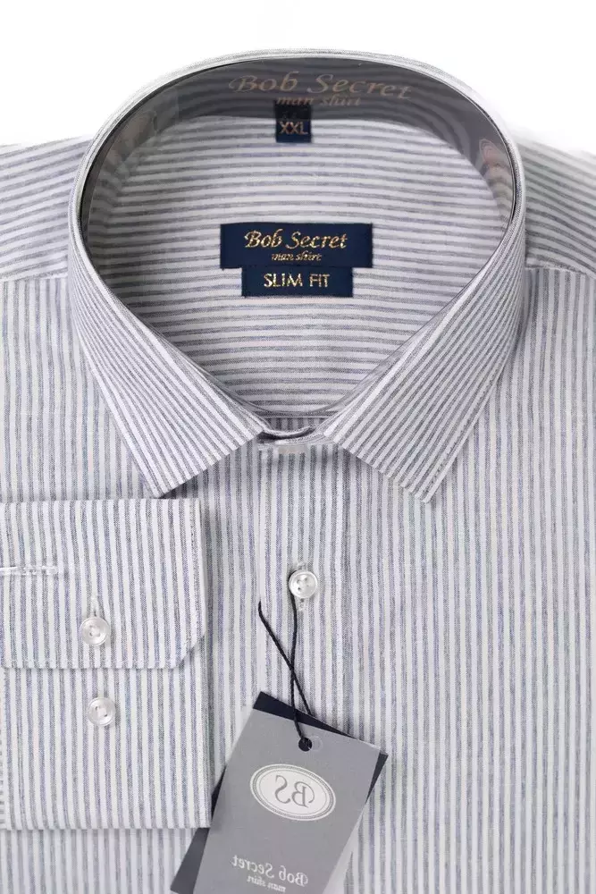 Сорочка чоловіча сіра у смужку у сірому кольорі. Дизайн у смужку. Крій slim fit. Класичний комір. Склад: котон 80%, поліестер 20%. Підходить для всіх сезонів. Для офісу, подій і щоденного носіння. Поєднується зі штанами, піджаком і жилеткою.
