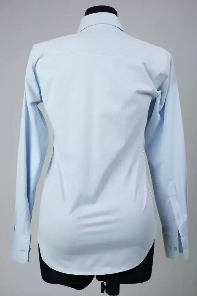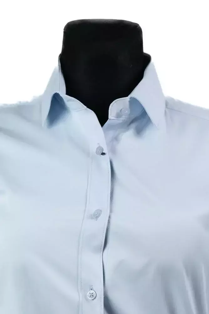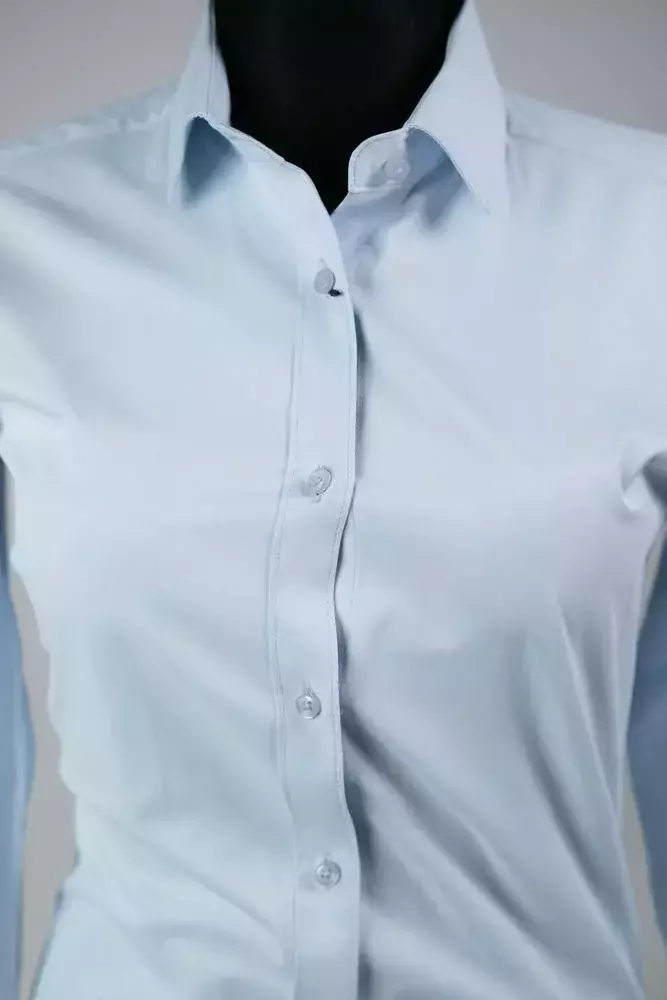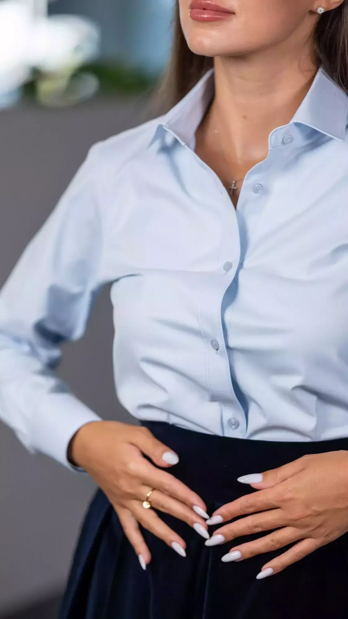 Сорочка жіноча блакитна у блакитному кольорі. Однотонний дизайн. Крій slim fit. Класичний комір. Склад: котон 80%, поліестер 20%. Підходить для всіх сезонів. Для офісу, подій і щоденного носіння. Поєднується зі штанами, піджаком і жилеткою.