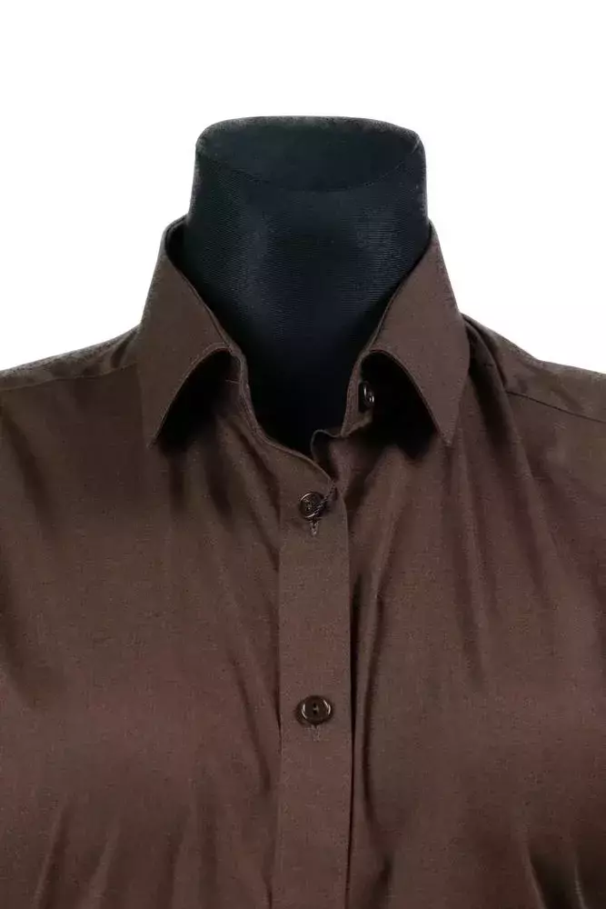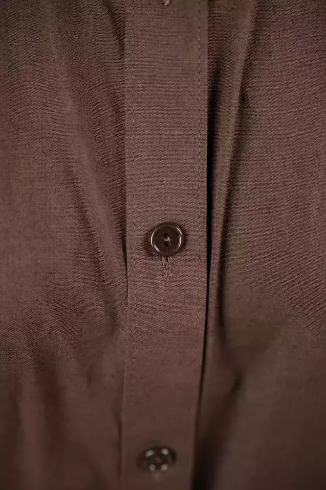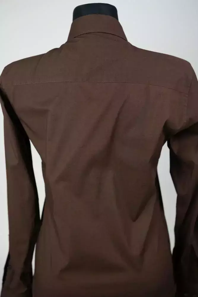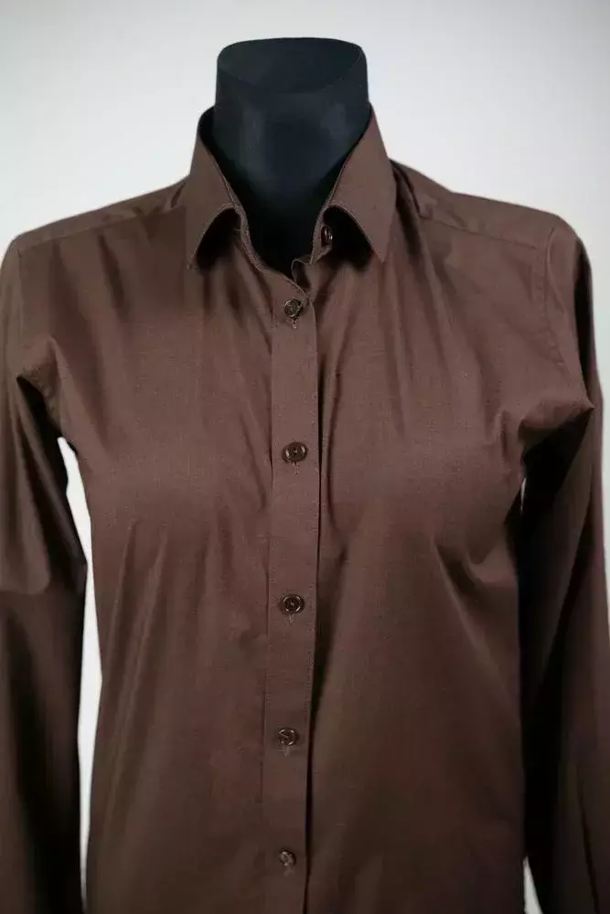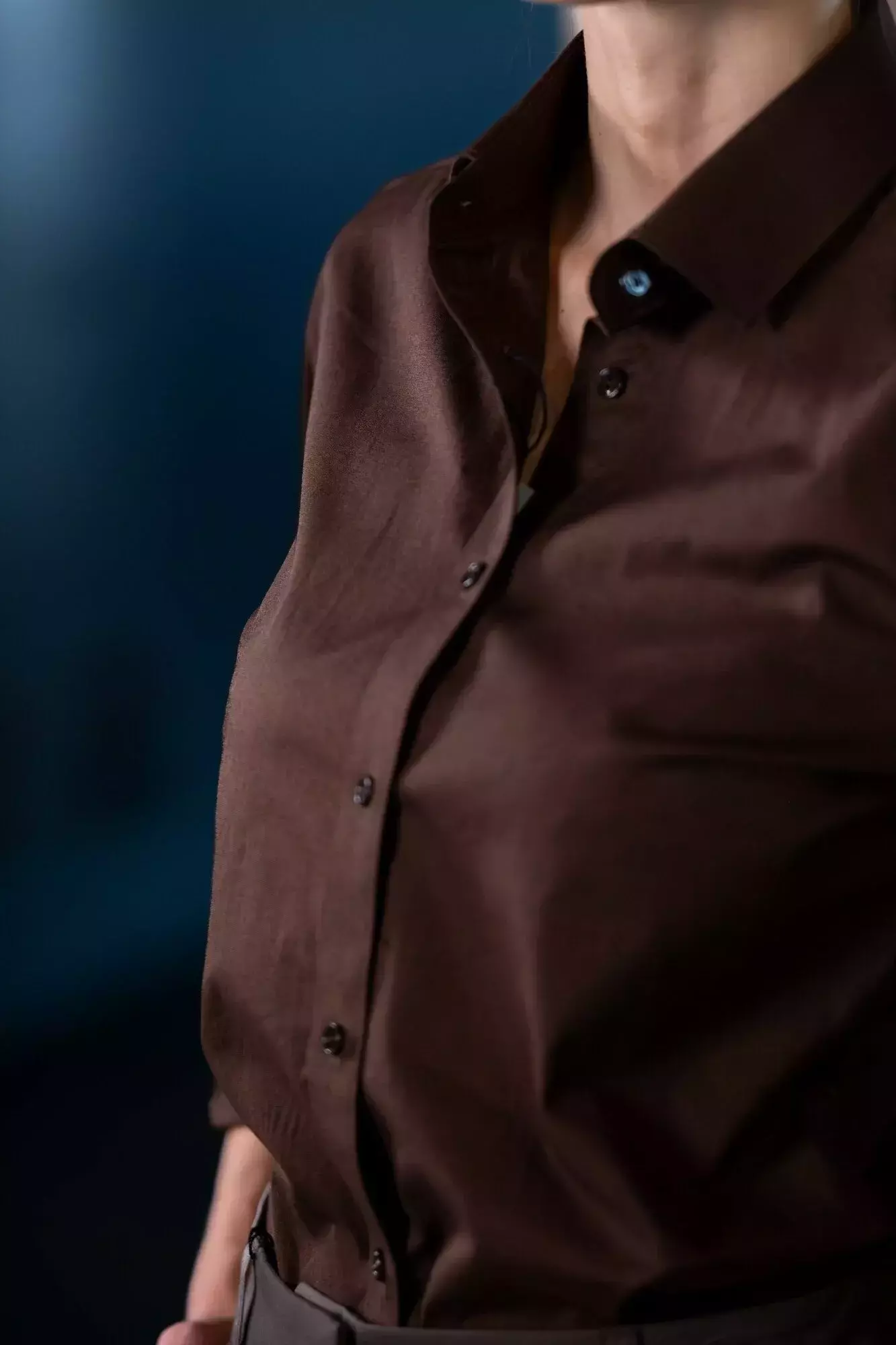Сорочка жіноча коричнева у коричневому кольорі. Однотонний дизайн. Крій slim fit. Класичний комір. Склад: котон 80%, поліестер 20%. Підходить для всіх сезонів. Для офісу, подій і щоденного носіння. Поєднується зі штанами, піджаком і жилеткою.