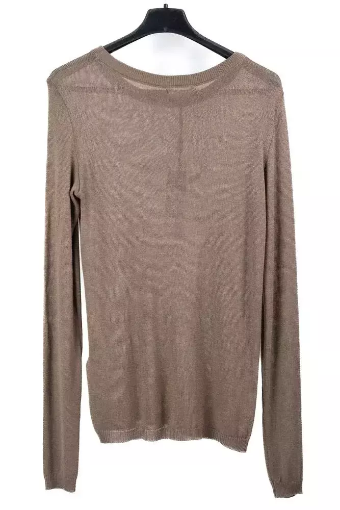 Лонгслів жіночий коричневий у коричневому кольорі. Однотонний дизайн. Склад: 60% бавовна, 40% віскоза. Для прохолодної погоди та щоденного носіння. Поєднується зі штанами, піджаком і пальтом.