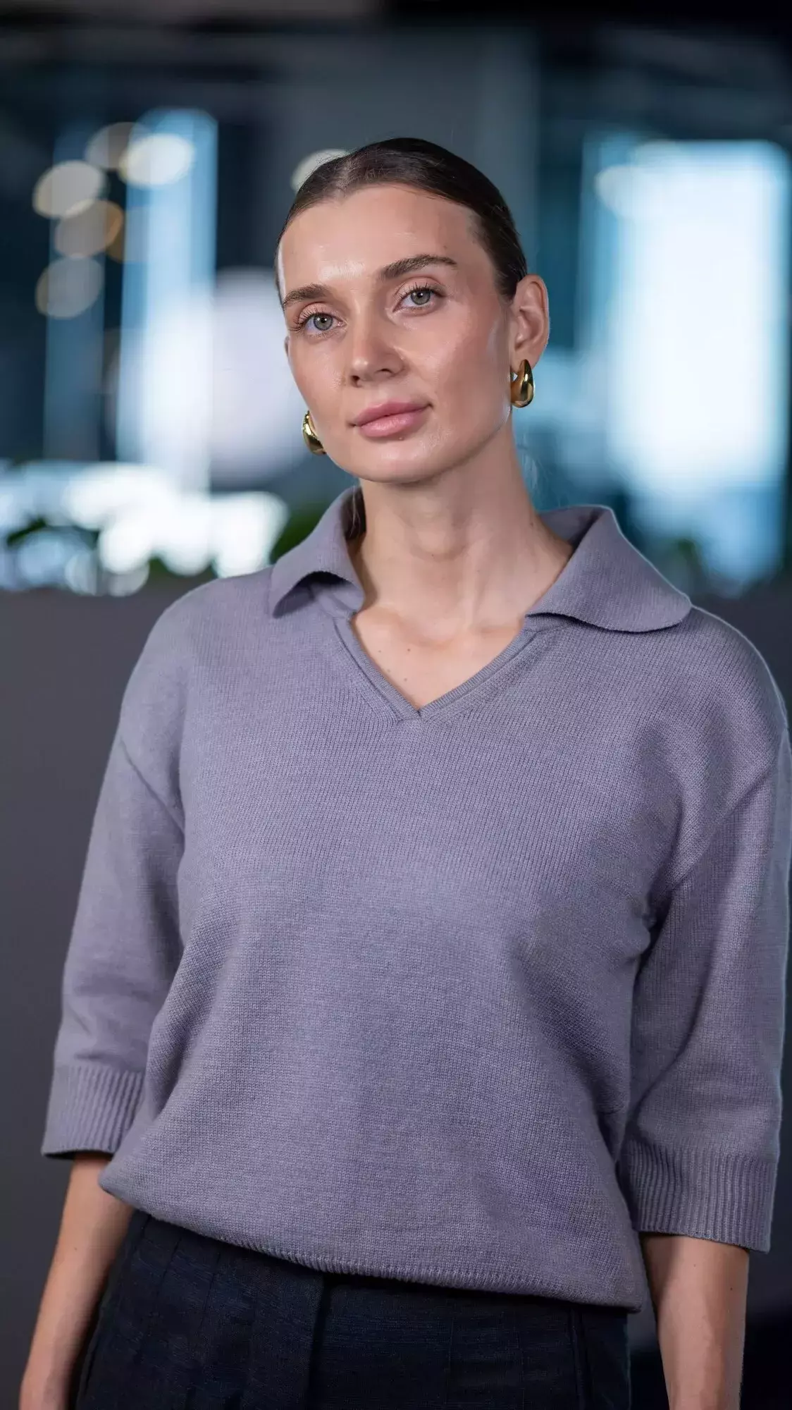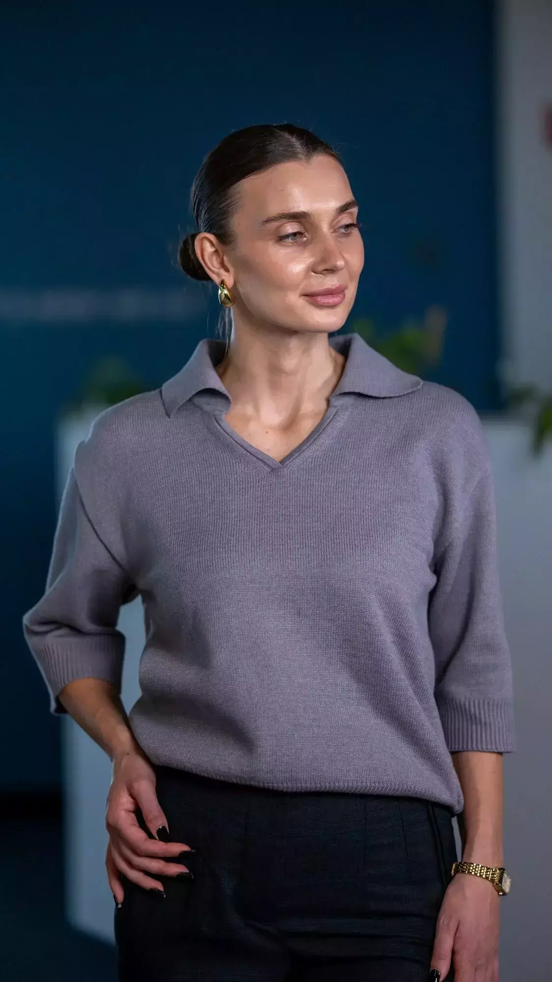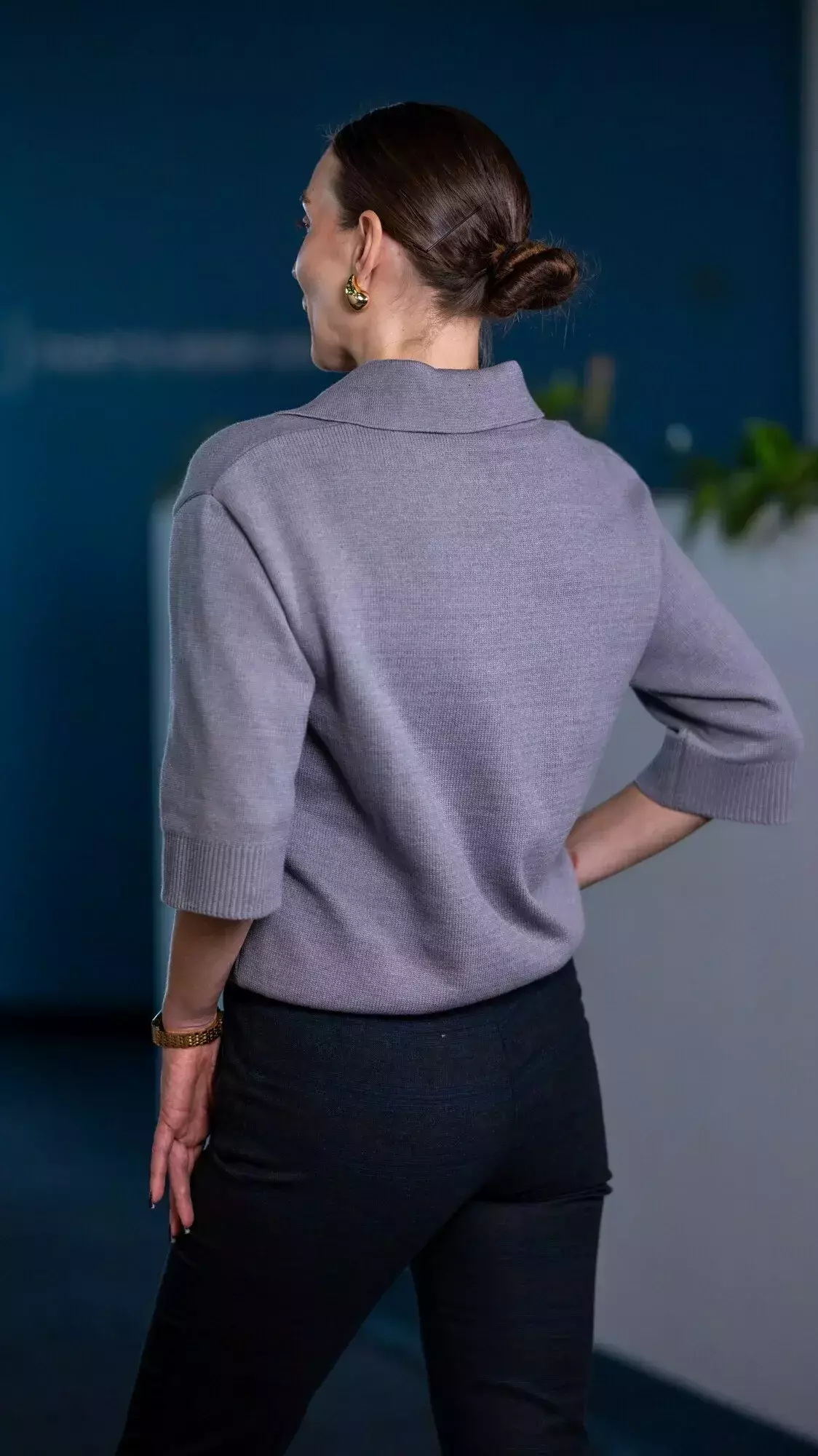 Поло жіноче сіре у сірому кольорі. Однотонний дизайн. Склад: 60% бавовна, 25% бамбук, 10% нейлон, 5% лайкра. Для прохолодної погоди та щоденного носіння. Поєднується зі штанами, піджаком і пальтом.