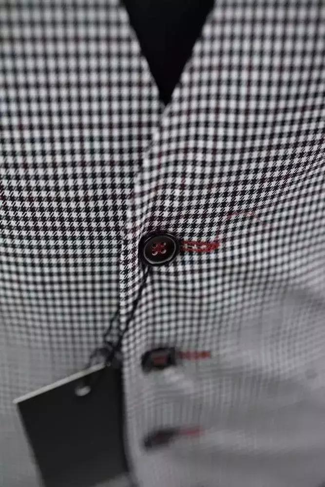 Жилетка чоловіча біла у білому кольорі. Дизайн у клітинку. Крій slim fit. Склад: 85% вовна, 10% поліестер, 5% віскоза. Підходить для всіх сезонів. Для костюмних комплектів, офісу та урочистих подій. Поєднується з піджаком, штанами та сорочкою.